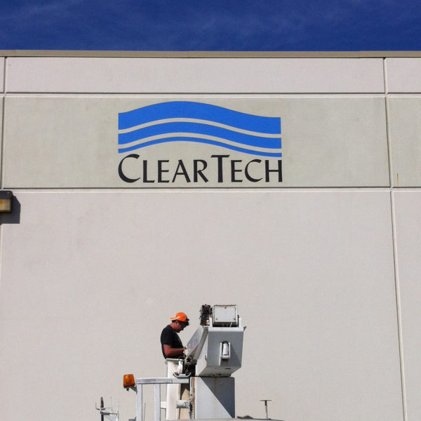 Die Cut Paint Mask Signs | Vancouver, Salsbury Dr. ClearTech is a leading distributor of chemical process equipment, instrumentation and laboratory products across Canada. As a Canada Wide brand, visual consistency is essential in recreating their logo. We achieved this through die cut stencils applied to the surface and finished...