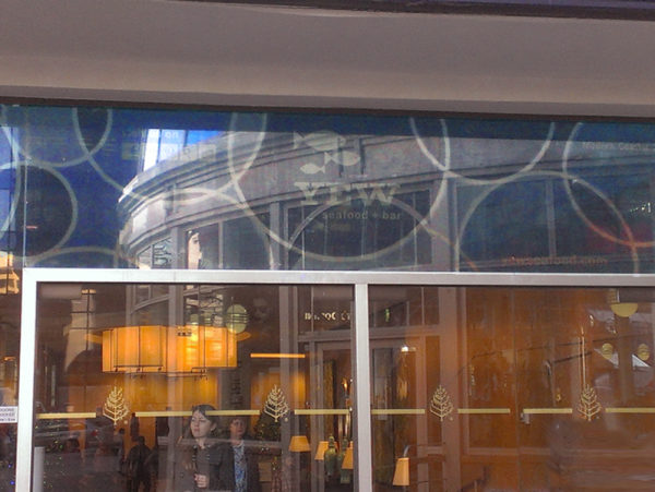 Translucent Printed Window Panels | Vancouver, Georgia St. Translucent window panels offer many advantages for this window sign for Yew Seafood Restaurant and Bar . In addition to reducing the glare passing through the window inside, the panels subtly tint the light, adding to their impact on the surrounding space....